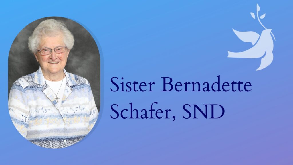 Sister Bernadette Schafer’s oldest sister was a Sister of Notre Dame. With a 10-year age difference, however, Sister Bernadette says she didn’t know her very well. She was only three…